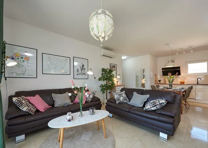 A kinti úszómedencét kínáló 1 szobás Golubica Apartman Trogir autóval körülbelül 15 percre található a Beach Vela Dragától. A 74 m^2-es apartman a Seget Donji körzetben helyezkedik el, a Szent Lőrinc Katedrálisól csak egy rövid autóútra.